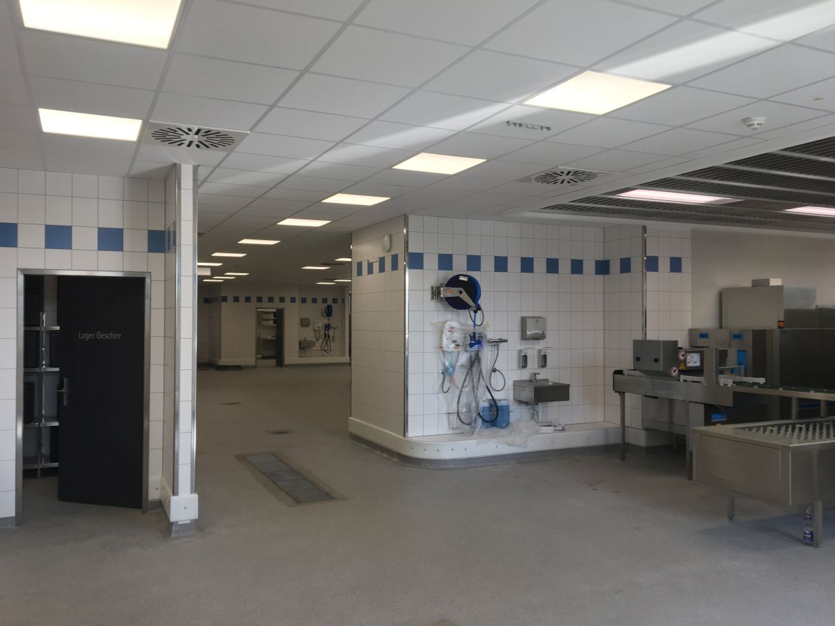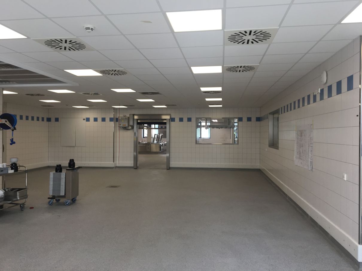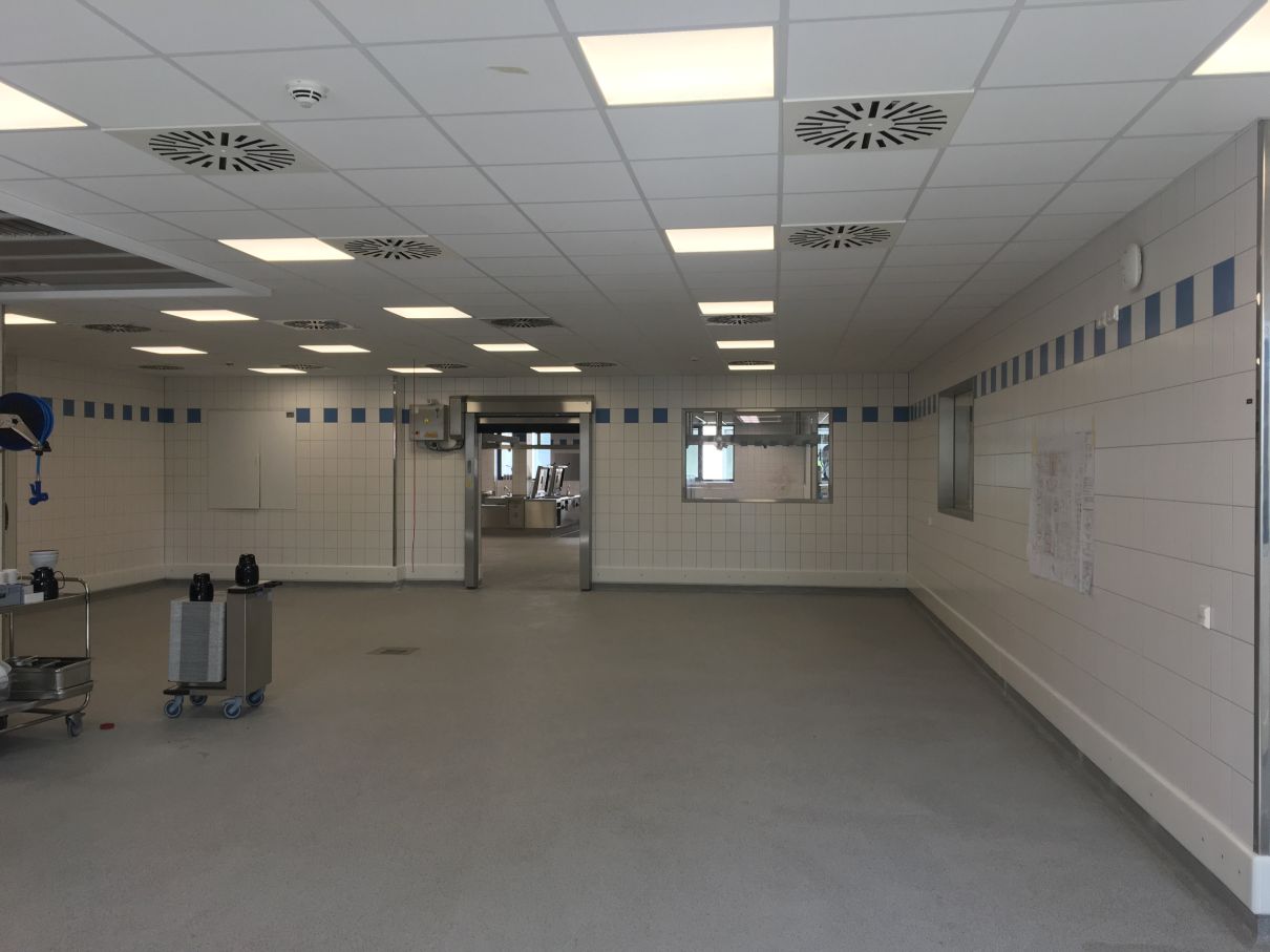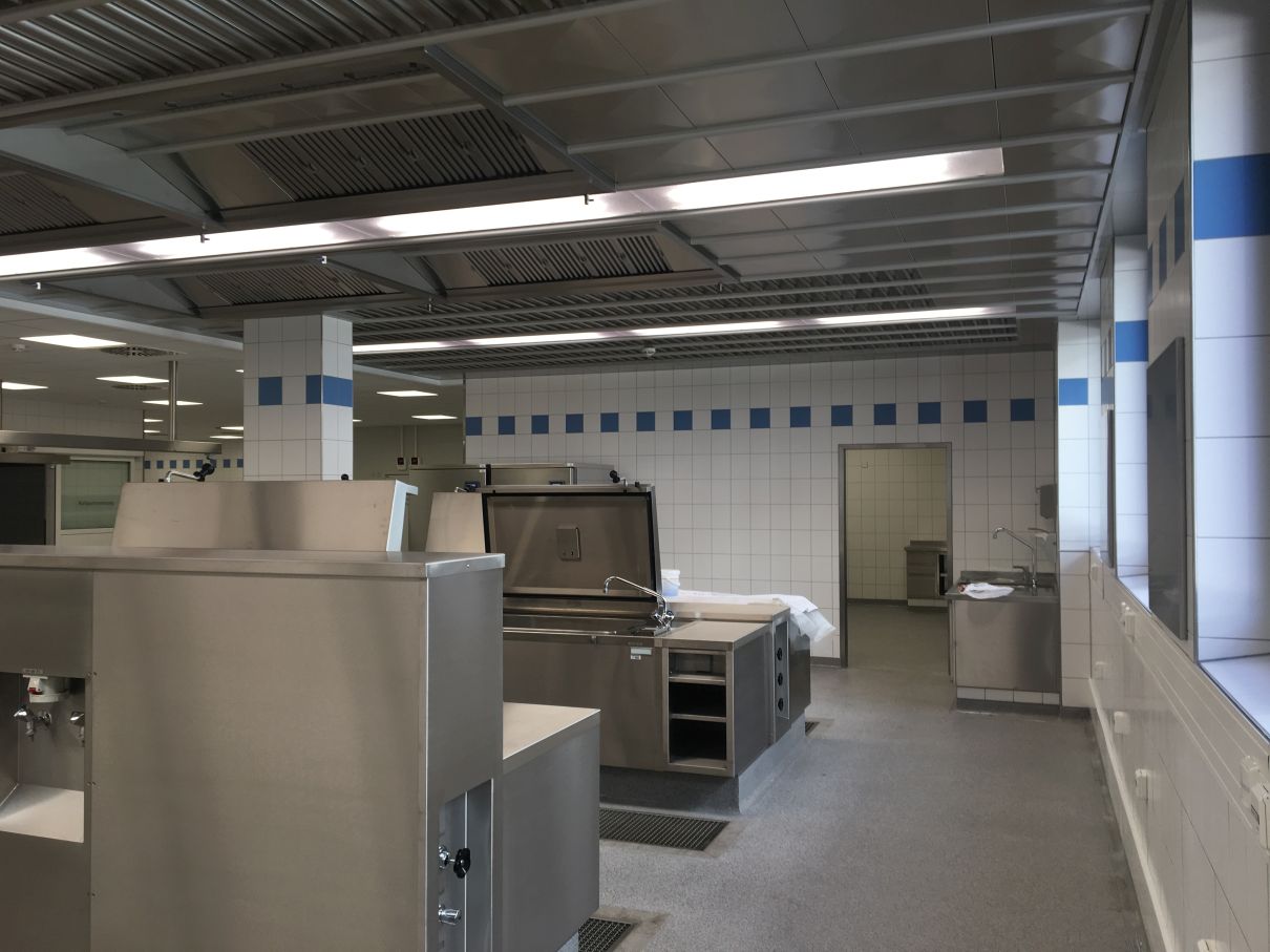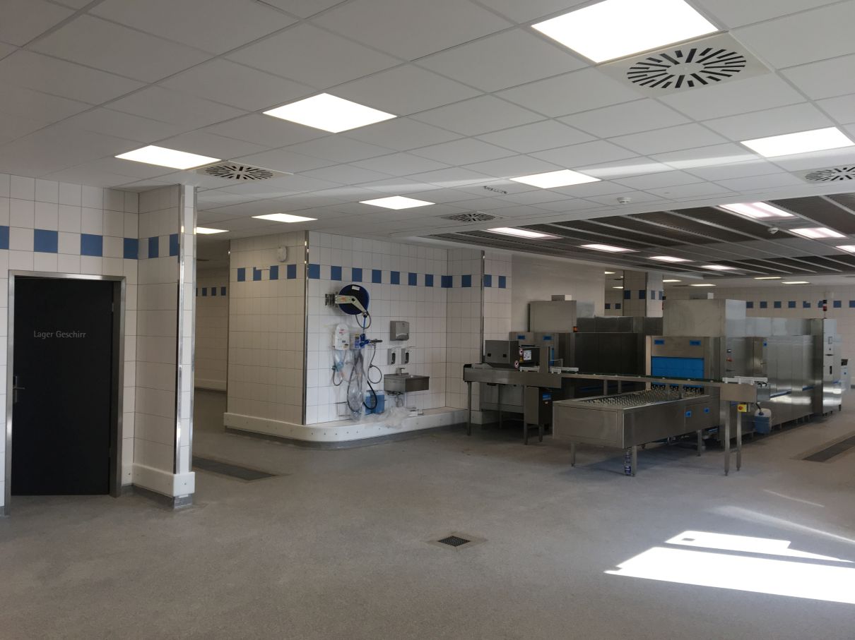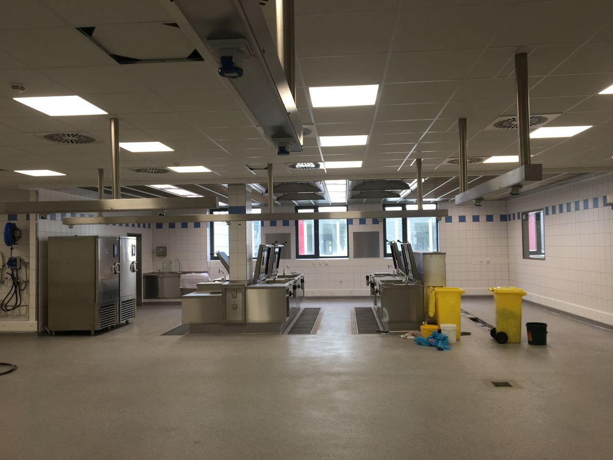 Egy ipari konyha burkolása volt a feladat. Aminek a különlegessége a (klasse c) osztályú/minősítésű víz szigetelés melynek követelménye az epoxid anyaggal történő fugázás.