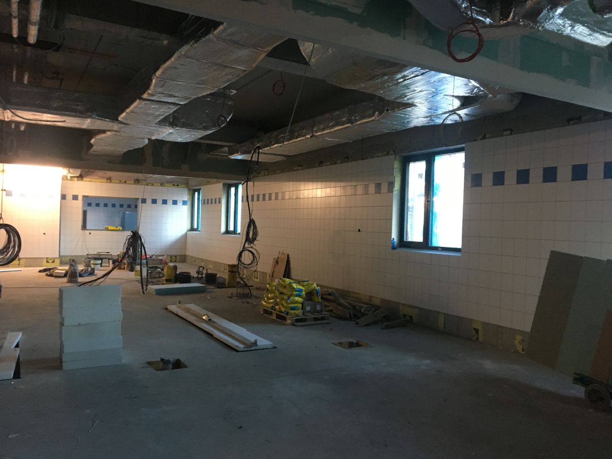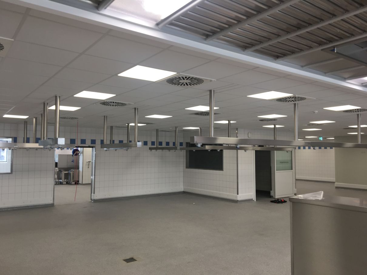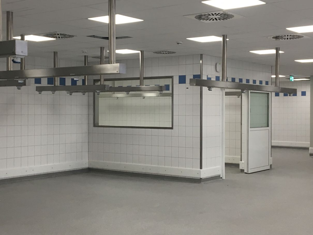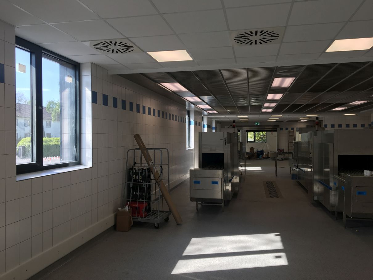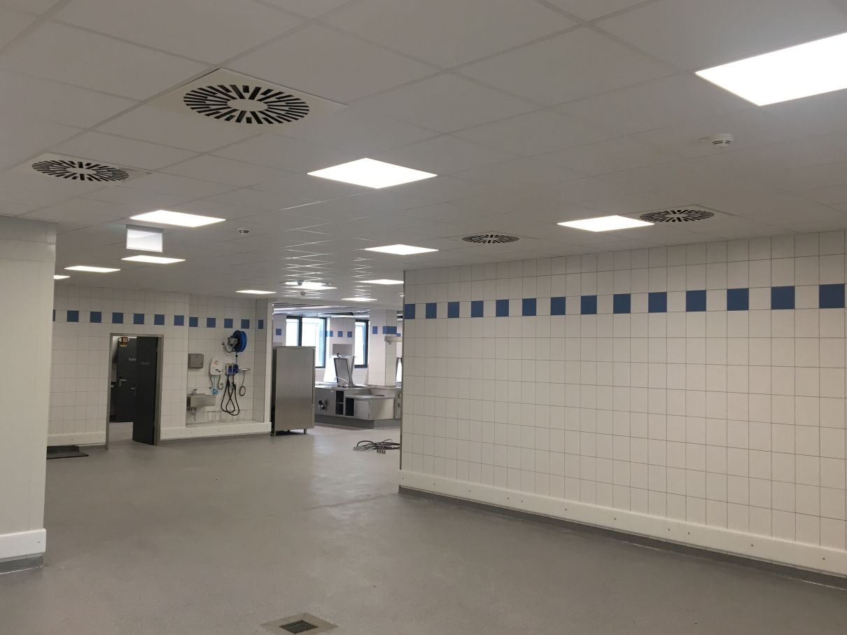 Egy ipari konyha burkolása volt a feladat. Aminek a különlegessége a (klasse c) osztályú/minősítésű víz szigetelés melynek követelménye az epoxid anyaggal történő fugázás.