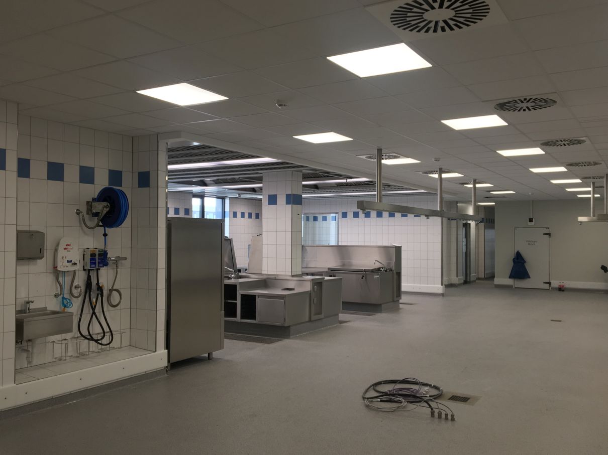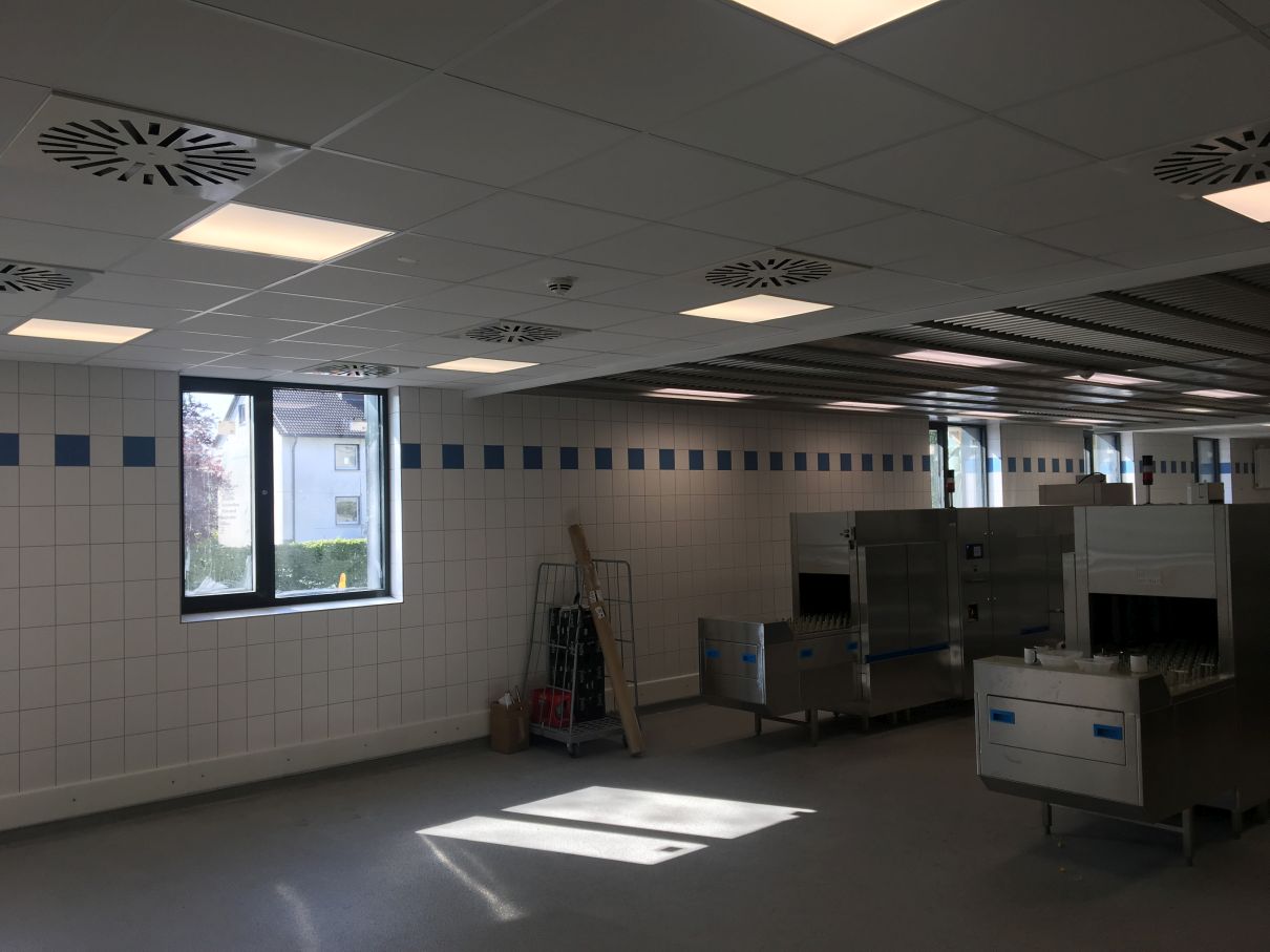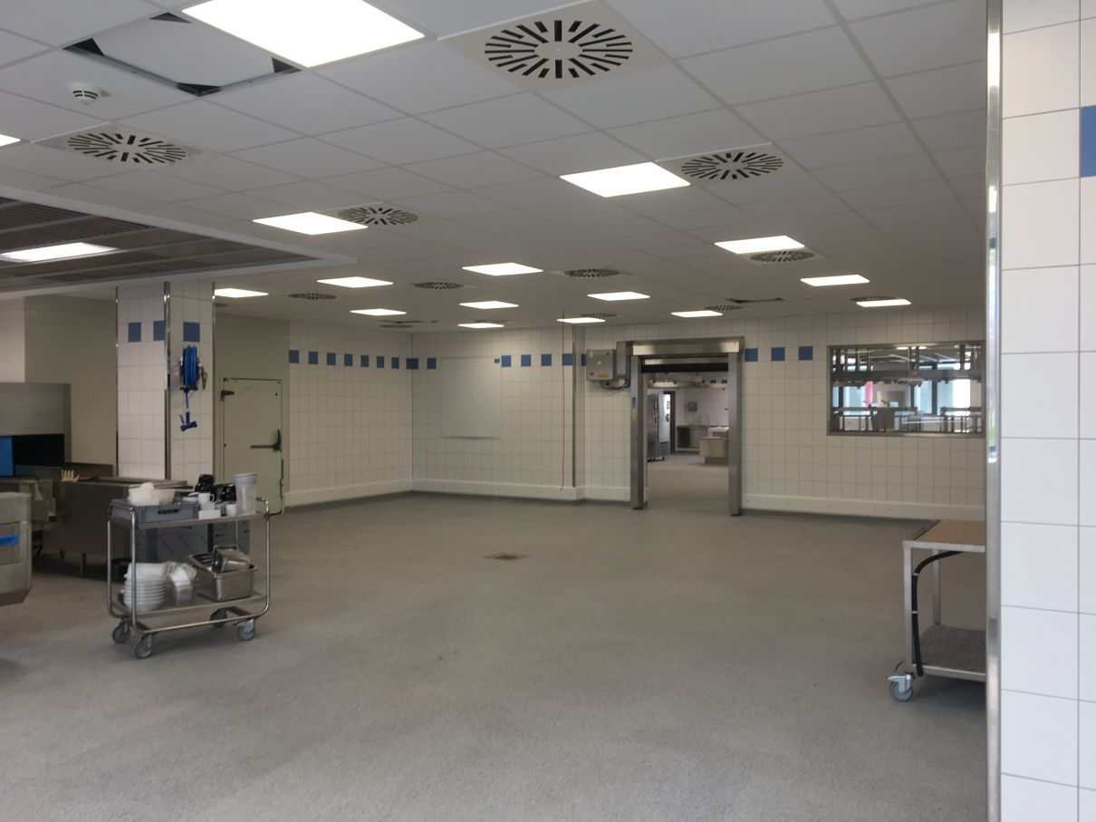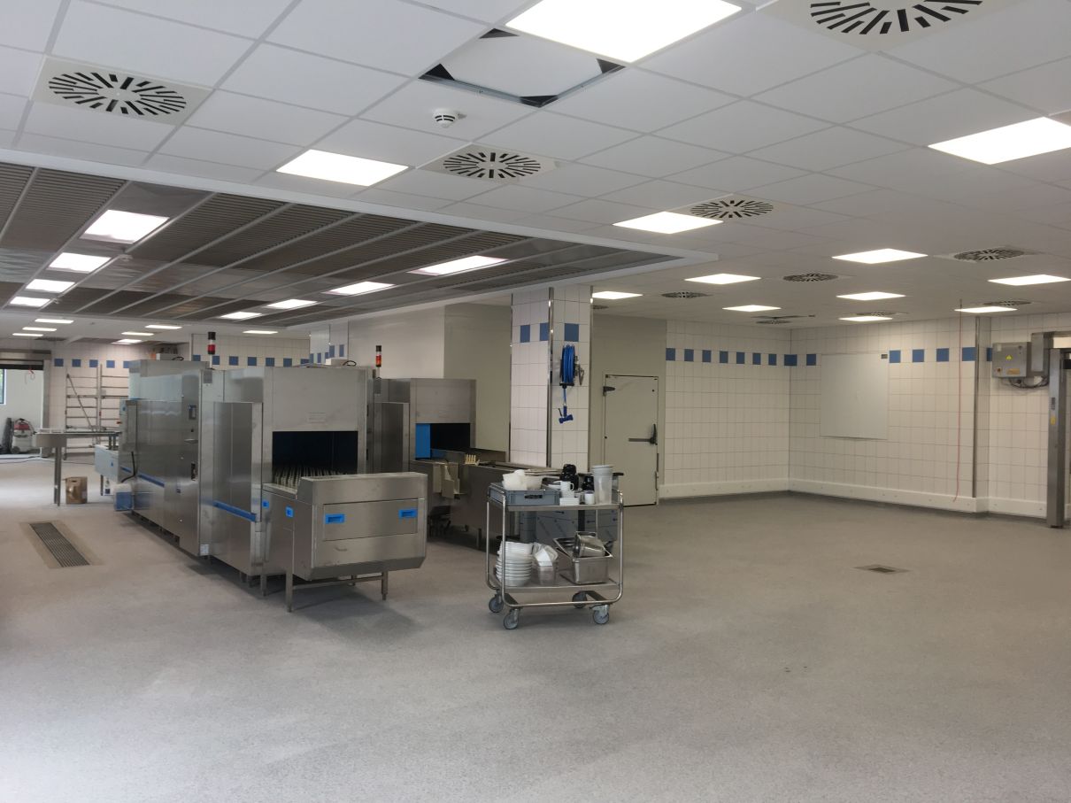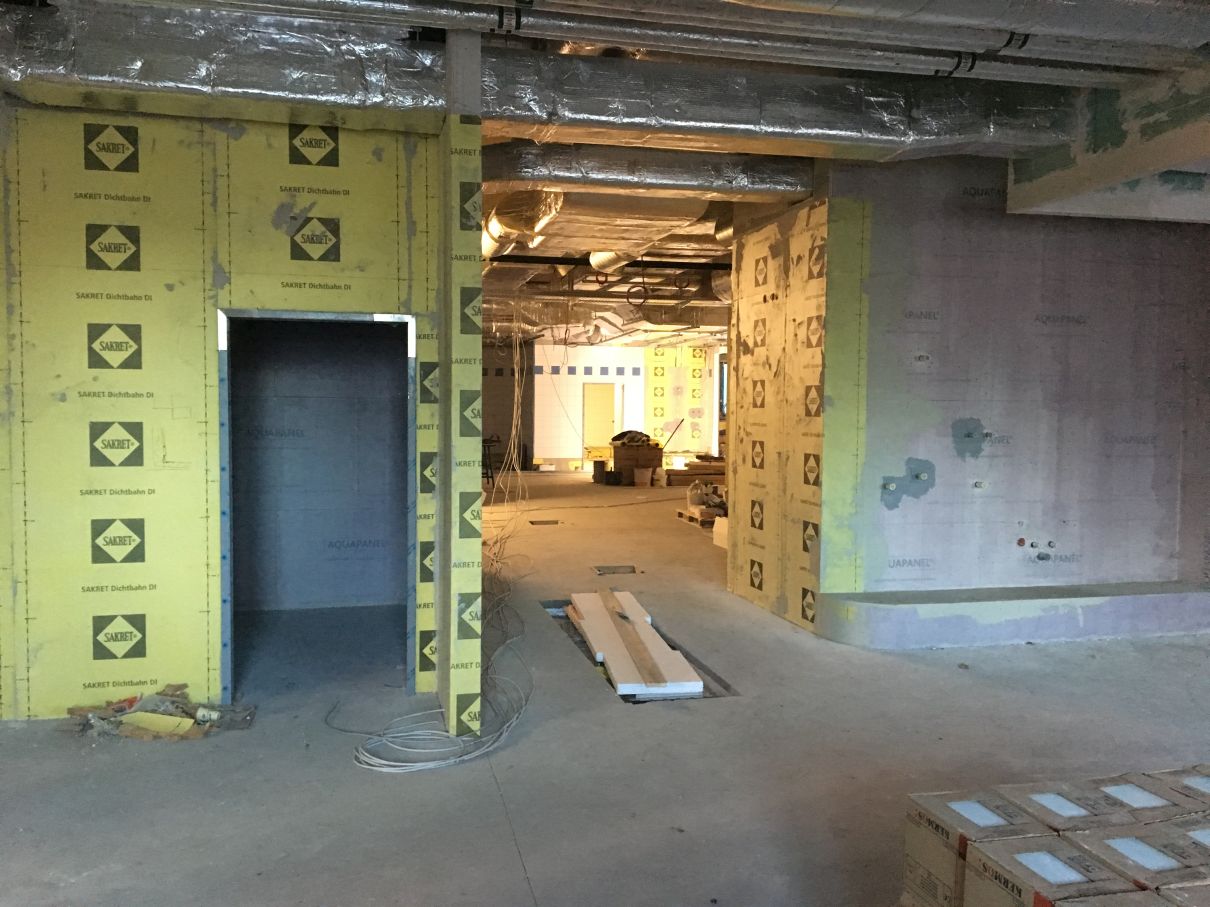 Egy ipari konyha burkolása volt a feladat. Aminek a különlegessége a (klasse c) osztályú/minősítésű víz szigetelés melynek követelménye az epoxid anyaggal történő fugázás.