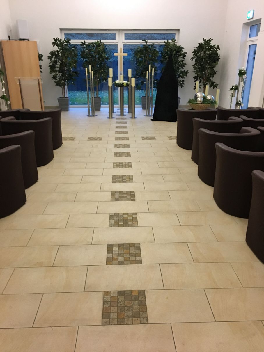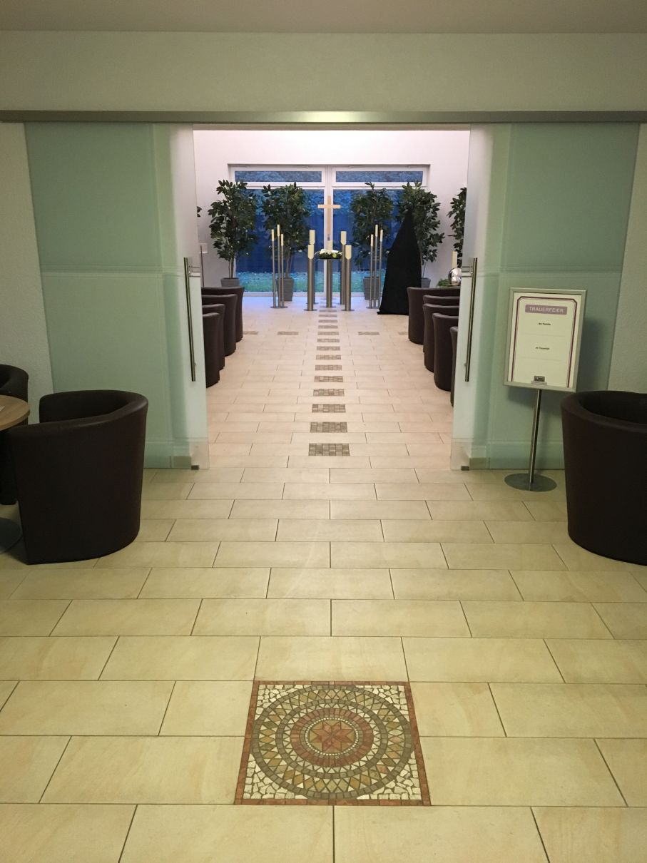 Ez egy temetkezési vállalkozó raktára és telephelye. Itt az érdekesség a kereszt formában lerakott mozaik csempék a ravatalozóban.